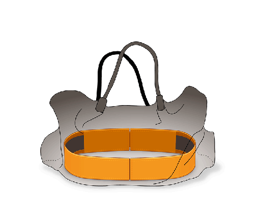 「カバンの骨piu」は、横方向の支え(バッグの下側面を囲う形)とマチ部分の支え(別名:たてボーン)で構成されている。本体をそのままカバンの中に入れ、型に合わせることでカバンが矯正され、くたびれることなく自立する。
