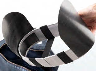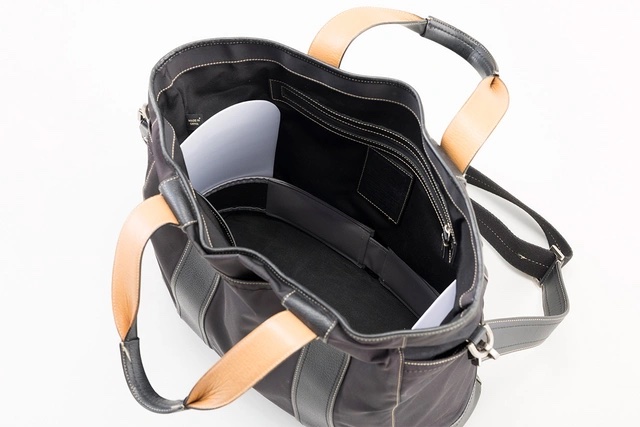 「カバンの骨piu」は、ふにゃふにゃカバンの中に入れて形を整え自立させる。
