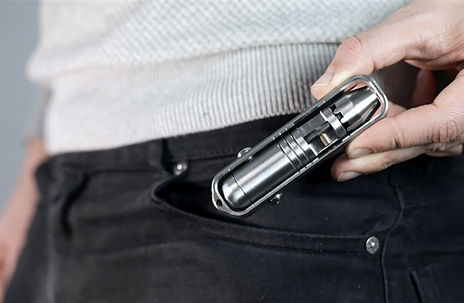 103 × 27 ×20mmと、手のひらに載るほどコンパクト。1920年代の工具に基づくレトロデザインと、パーツを動かす際の独特なクリック感も特徴的だ。