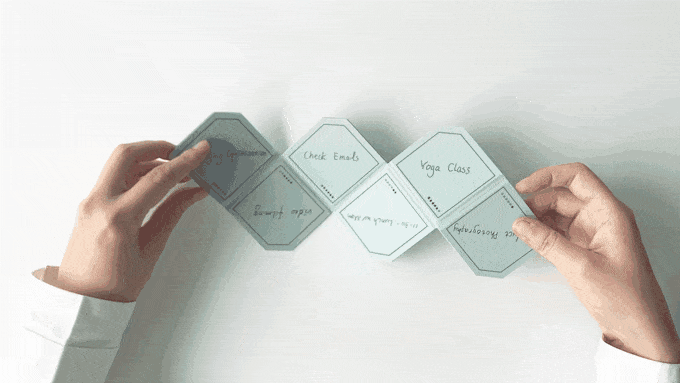 「Cubic Planner」は6枚のメモパーツとマグネットで構成されており、組み立てるとキューブ状になる。各面にその日のタスクを記入、デスク上に置くことで、自分がいま何をするべきかを視覚化してくれる。
