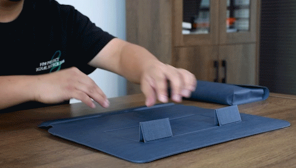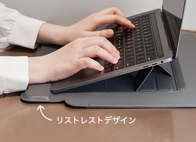 ノートパソコンをケースから取り出し、スタンドを立てれば、あっという間にワークステーションに早変わり。