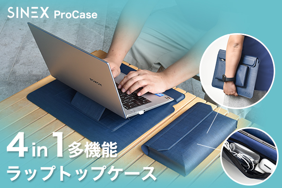 「SINEX ProCase」は、ケース・スタンド・リストレスト・小物入れの4つの機能を持つPCケースだ。