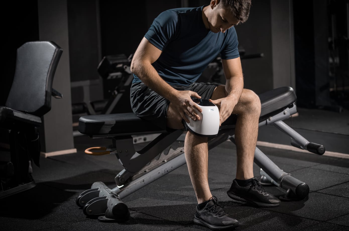 「Kneeflow」は、ヒザに特化したさまざまな機能を搭載したポータブルマシン。コンパクトなコードレス設計で、どこでも気軽に使える。