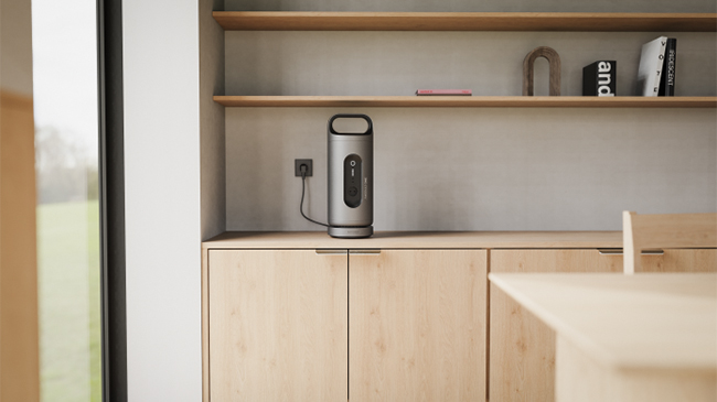Red Dot Design Award 2023を受賞した家庭用蓄電池「MYGRID MODULEONE」。コンセントに挿すだけですぐ使い始められるシンプルな設計が特徴だ。