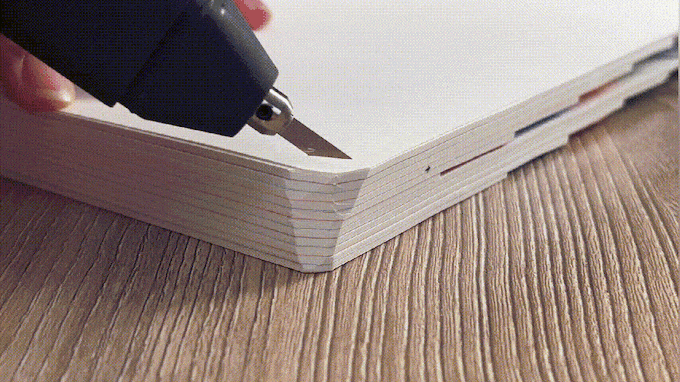 「MAGICUTTER」は小型の超音波カッター。刃を毎秒4万回往復振動させ、少ない力で対象を切断するという。