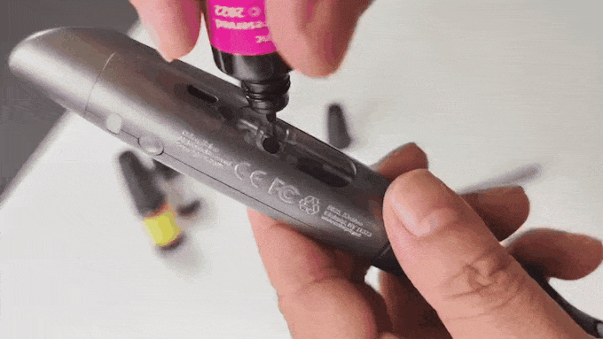 使い方は、使いたい色をペン尻でスキャンするだけ。「Colorpik Pen」の中でインクが調合されて、スキャンした色で描ける。