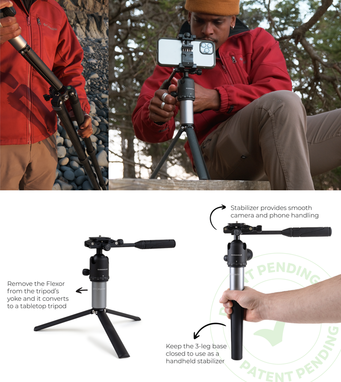 また、シリコングリップのついた脚を取り外し、The flexorと組み合わせて一脚としても使える。