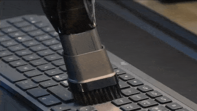 吸引力は15,000Pa。ブラシヘッドを付ければ、掃除機として使える。吸い取ったゴミは、ブラシヘッドの手前に付いているダストカップに溜まる。金属と、高性能エアフィルターのHEPAフィルターになっていて、手入れも簡単にできる。