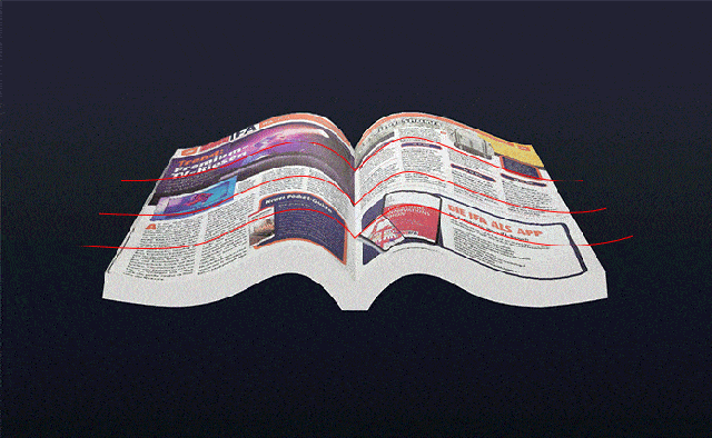 湾曲補正技術で歪みを認識し、スキャン画像を自動で平坦化する。大切な本や貴重な資料を傷つけることなく、見開きページの中心部も「自炊」できるという。