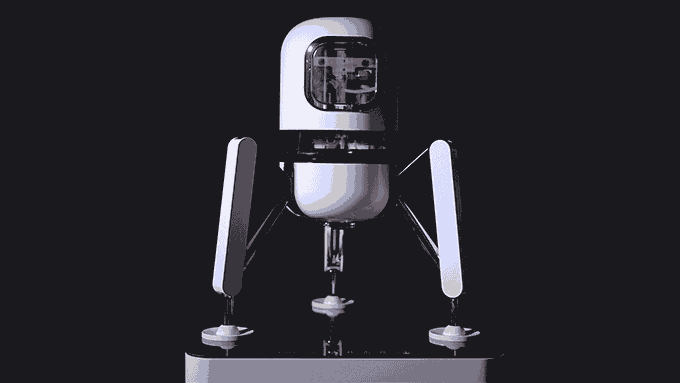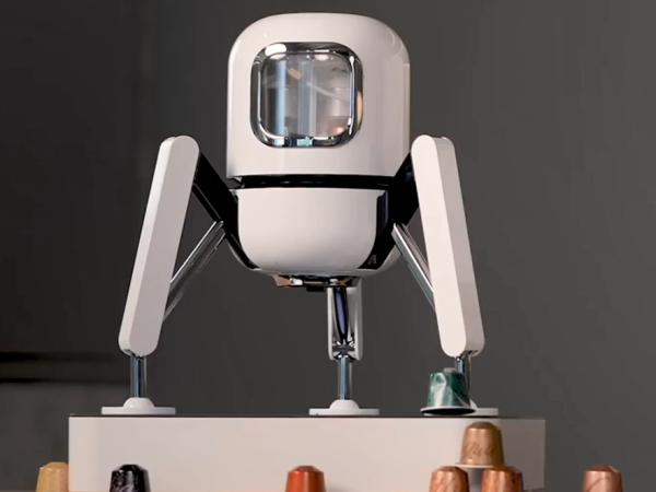 「DUOBO」は、月面着陸の宇宙船のようなデザインのカプセル式コーヒーマシン。ネスプレッソのカプセルを抽出するタイプで、ポーションは同形状の互換品も使える。