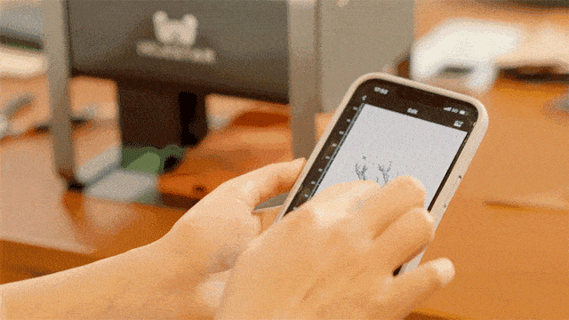 Bluetooth対応でスマホのデータからオリジナルの彫刻を作成できる。加工前に位置調整をして刻印のズレを防ぐ。