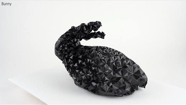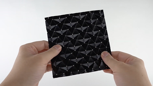 折り紙構造を自動で折る「自己折り」の技術で、従来よりも複雑な立体構造を短時間で成型できるという。