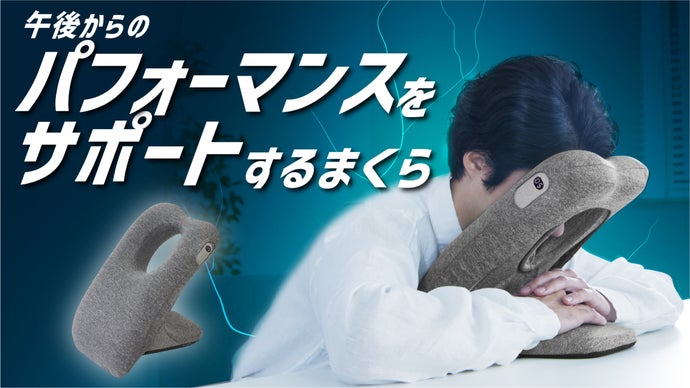 「午後のまくら」は、卓上に置いて使用する昼寝用まくら。これがあればオフィスでもワンランク上の休憩時間が得られるかもしれない。