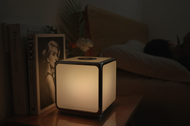 「CUBLGHT」は、時間によって明るさが変わるベッドサイドランプだ。