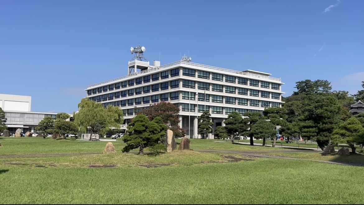 乃木の普段の仮の姿は、丸菱商事のダメ社員。その素性に疑念を持った公安の野崎刑事(阿部寛)が、乃木の生い立ちを調べにまず立ち寄ったのが島根県庁である。ここで建物の全景と、野崎が入っていくシーンが撮影された。