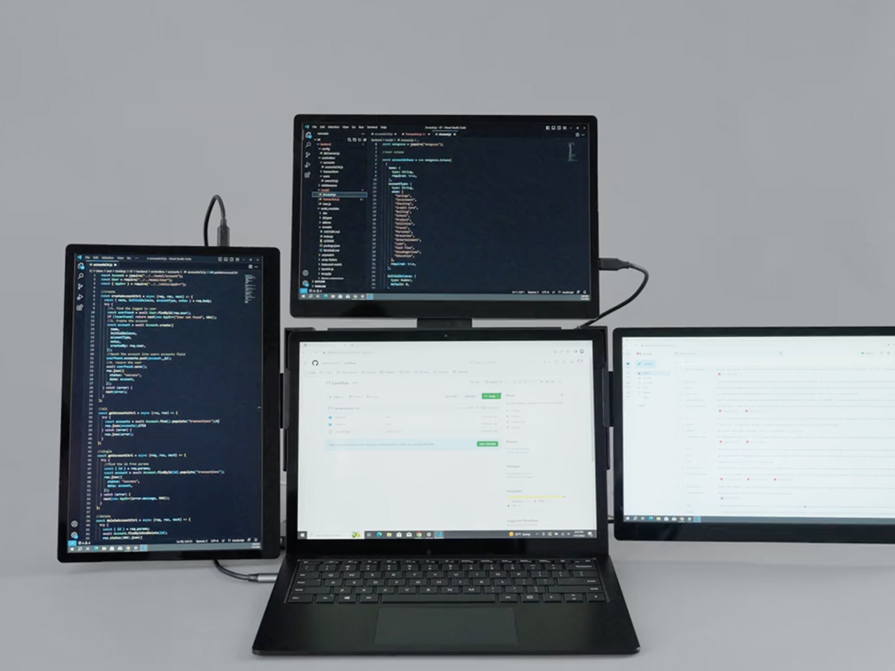 「Quanvizo ExtendPro」は、ノートPCを最大4画面まで拡張できるポータブルモニター。ニーズに合わせて画面数を変えやすいモジュラー設計が特徴だ。