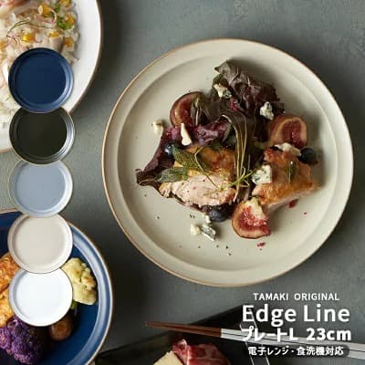 陶器製らしいマットな質感にリムデザインが映える、エッジラインシリーズ。ラウンドプレートは定番の白・黒に加えグレーやブルーなど、大人なベーシックカラーを採用しています。