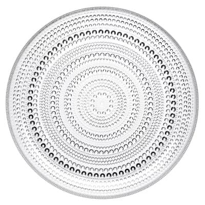 朝露から着想を得てデザインされた、カステヘルミシリーズのプレート皿。放射状に広がるしずくのようなデコレーションが、ガラスのうつくしさを引き立てています。