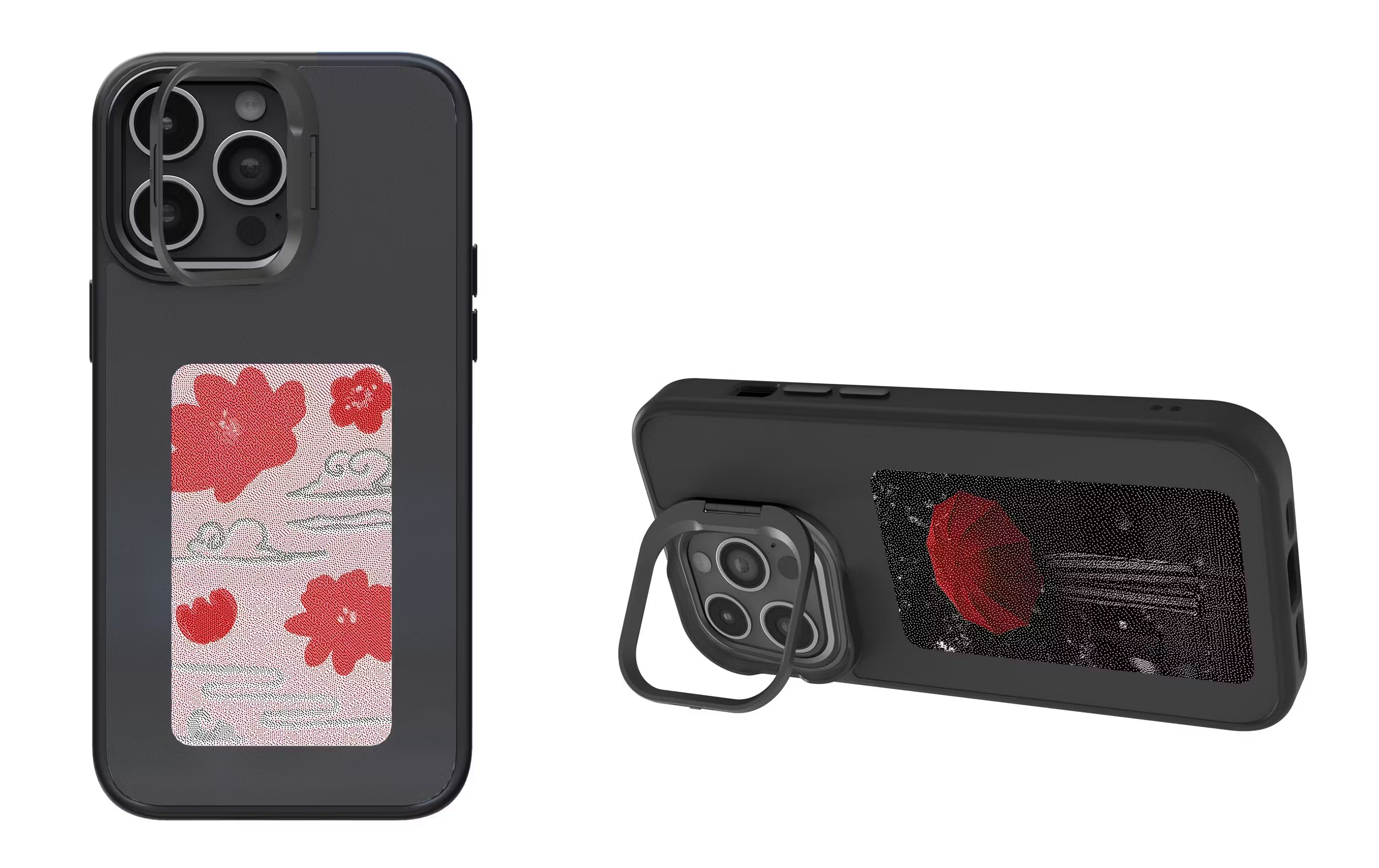 「Reink Case」は、3.7インチのE Inkスクリーンを搭載したケース。画像を転送すると3色インクで表示してケースのデザインを自分好みに変えられる。