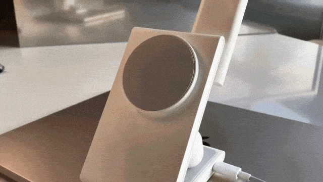 MagSafeに対応し、磁力でiPhoneを吸着しながら充電できる。iOS 17の新機能となる「スタンバイ」に対応。