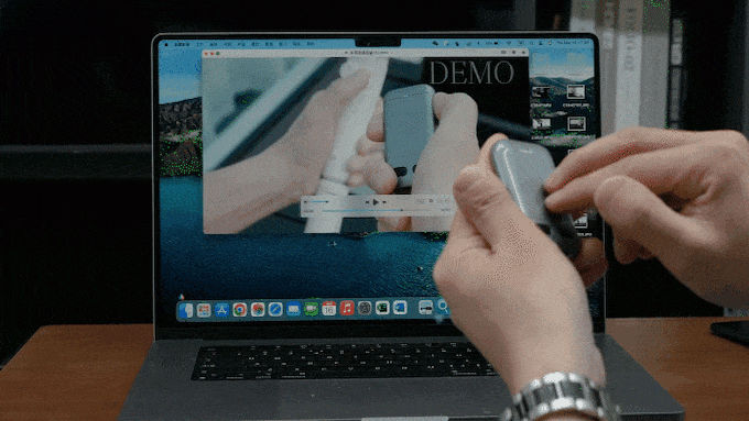 外観は小さなモバイルマウス。しかし、本体上部はタッチパッドとしても使える。パワポなどスライド操作や画像の拡大など片手で行える