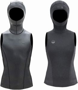 フードが一体になったネオプレーン製ベスト。2~3mmの厚みがあり、インナーのなかではもっとも保温性が高い。