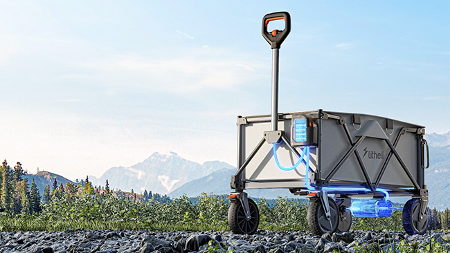 「Litheli W1 Pro」は、最大500Wのモーターを搭載する電動自走式キャリーワゴン。オフロード車にも使用されるオールテレーンタイヤを採用し、砂利道や泥地などでも使える。