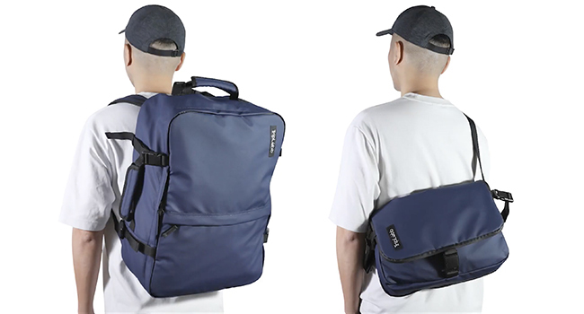 耐水性の生地で、急な雨からも荷物を守れる。カラーはグレーとネイビーの2色から選択可能だ。