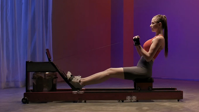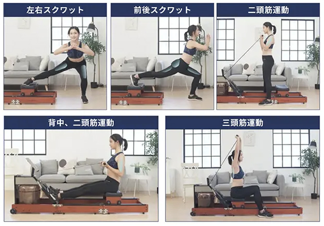 「KingSmithウォーターローイングマシン」は、耐久性に優れたガラス繊維パネル採用のローイングマシン。背中・腕から下半身まで、これ1台で全身トレーニングができるという。