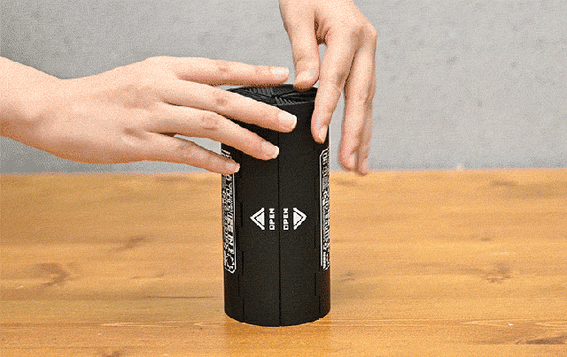 円柱型の専用ケースをパカッと開くと中身を一覧でき、目当てのツールを見つけやすい。また、閉じるとペットボトル大にまとまり、コンパクトに持ち運べる。