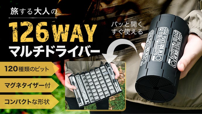 120種類ものビットが1セットになった「旅する大人の126WAYマルチドライバー」。精密機器の分解・調整から家具・家電の組み立てまで、幅広い用途で活躍しそうなプロダクトだ。