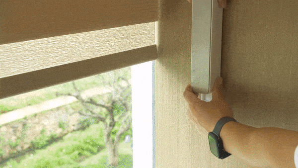 「Arpobot Smart Shade」の本体にブラインドのチェーンを通し、スマホとペアリングすると、アプリから遠隔で上げ下げできるようになる。スケジュールを設定して自動化も可能だ。