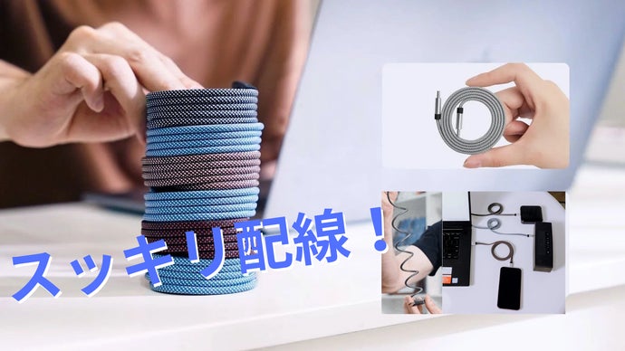 「MagCable」はケーブルに磁石を組み込み、渦巻き状に自然とまとまるUSBケーブル。Makuakeにてクラウドファンディング中。2,235円(税込)から支援購入可能で、2024年1月末までにお届け予定。