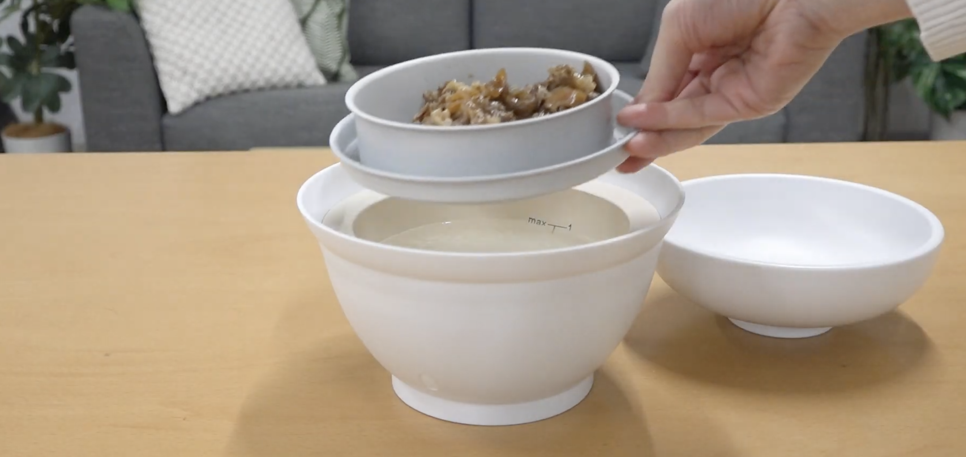 どんぶりや付属のトレイは、食洗機で洗えます。なので炊飯から食べ終わるまで、どんぶりひとつで完結し、時短にもなります。