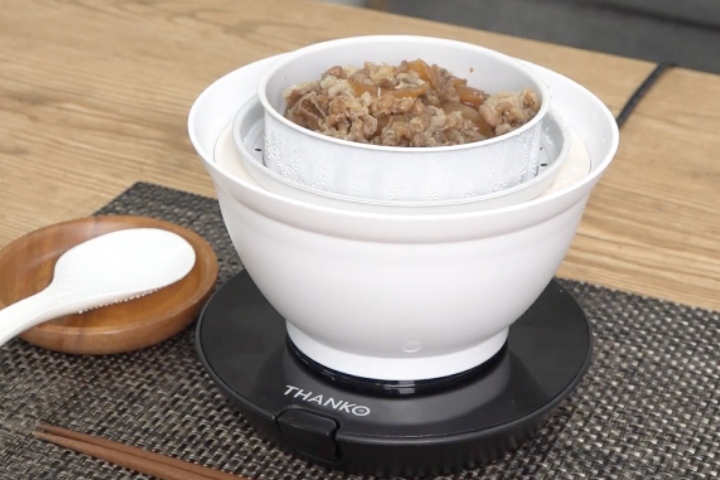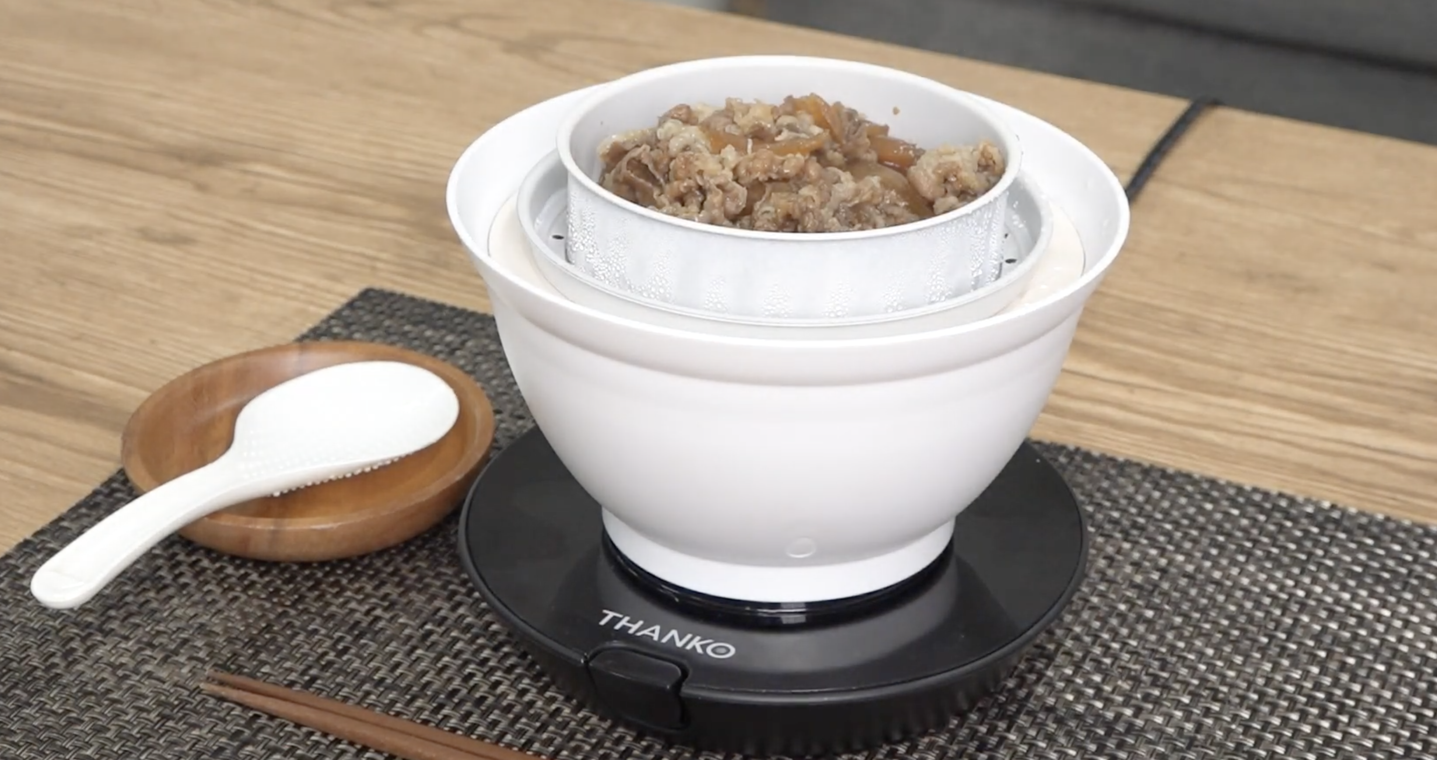 これ一台で、炊いてそのまま食べられる!おかずも同時に温められる2段式のどんぶり型炊飯器 |「2段式どんぶり型超高速炊飯器「炊き立て丼」」の販売ページ | THANKO|サンコー公式通販サイト|サンコー公式通販サイト