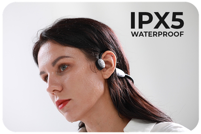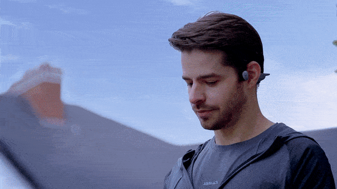 耳を塞がない骨伝導式なので、音を直接内耳へ届ける。圧迫感がないうえ、外耳や内耳に障害があっても音が届きやすいという。