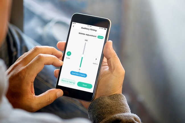 さらに、聞こえ方調整用のデバイスまたはスマホアプリを使って自分の聴力に合わせた調整が可能。調節の範囲は、500~8000Hz。左右の音量調節もでき、片耳だけに使いたい人にも利用できる。