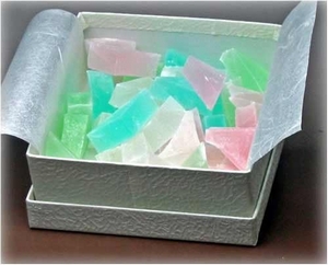 砂糖を一緒に炊き上げた寒天を天日干しし、表面を結晶化。儚い食感と素朴な味わいが楽しめます。透明感のある見た目も特長です。