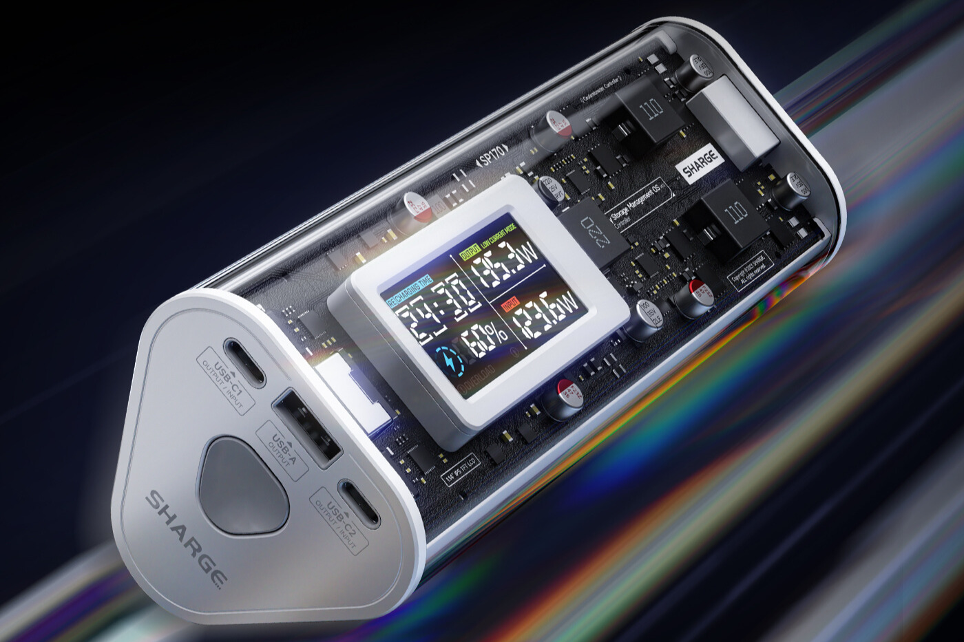 Transparent Prism Silhouette | 3-device Fast Charging | 170W Max Output | 140W Max Input | 24,000mAh | Smart Display | Water Resistance