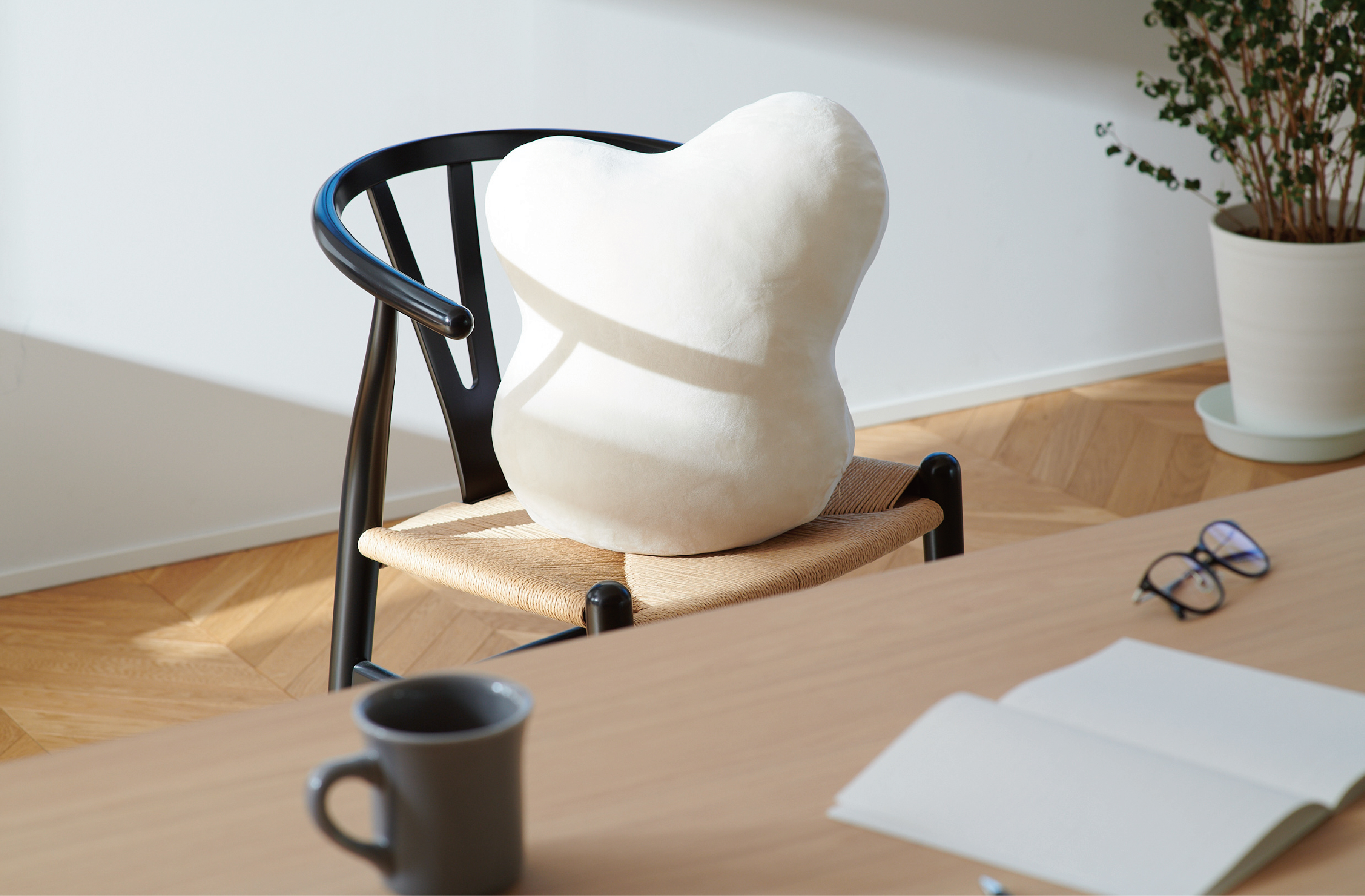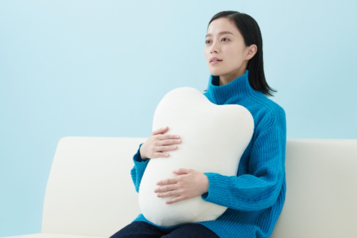 使い方は、スイッチを押して、ただ抱きかかえるだけ。クッションが伸縮する動きに合わせて、深呼吸をすれば、自然と心が落ち着き、リラックスできそう。