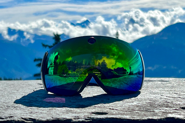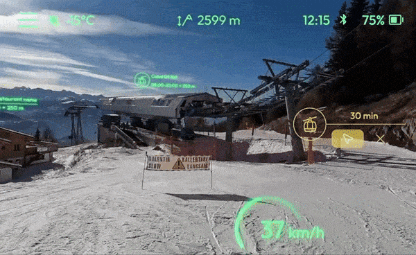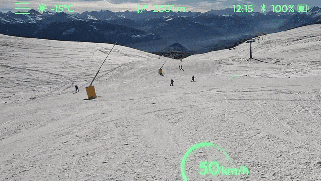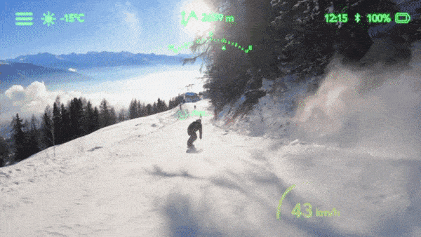 レンズの内側にディスプレイが配置され、ナビ情報・滑っている速度・位置・天気などを表示できる。