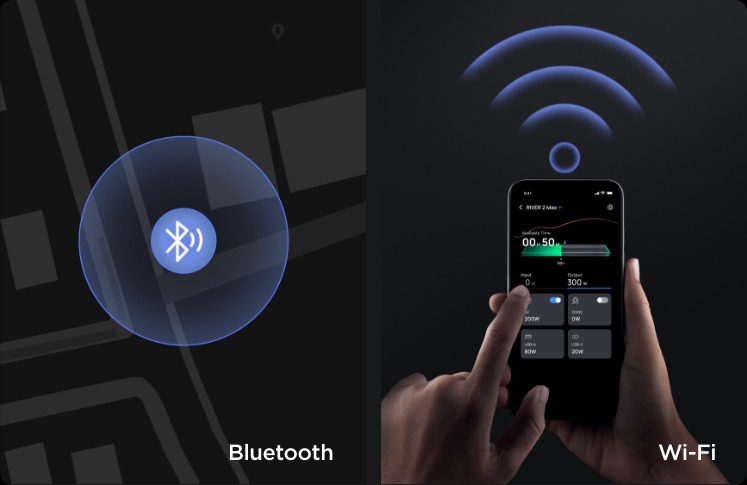 Wi-Fi接続の他、Bluetoothにも対応しておりスマホなどと連携できる。専用アプリを使用すれば、バッテリーの残量確認や充電速度の調整など遠隔操作も可能。