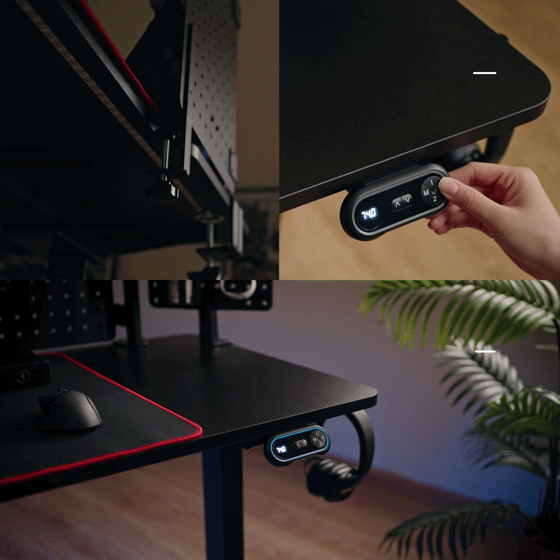 「G-Desk」は手動で3 つの高さオプション (710/760/810mm) からデスクの高さを調整でき、側面についたボタンを押すとデスク裏についたLEDライトが光る。隣のボタンで色も変えられる。