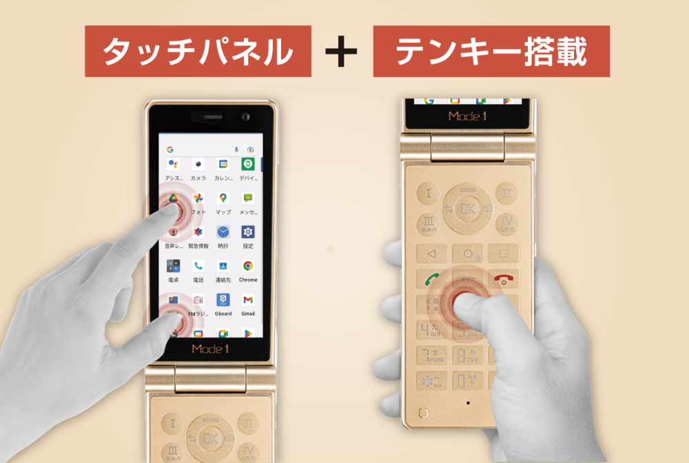 • 株式会社P-UP Worldから発売された「Mode1 RETROⅡ」は、折りたたみケータイの形をしたSIMフリースマートフォン。タッチパネルと物理ボタン両方の操作が可能で、スマホのようにさまざまなアプリを利用できる。