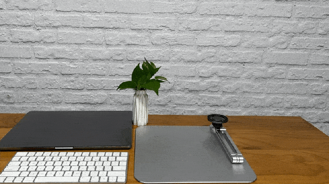 アームは長いが、土台が広く安定感があるので吸着したまま操作が可能だという。また、土台のプレートはマウスパッドになっている。