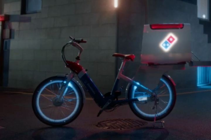 「dxb」は宅配ピザチェーン店、ドミノ・ピザが発表した保温機能を搭載した電動アシスト自転車のコンセプト。「dxb」に乗れば、安全に出来たてのアツアツピザを配達できます。