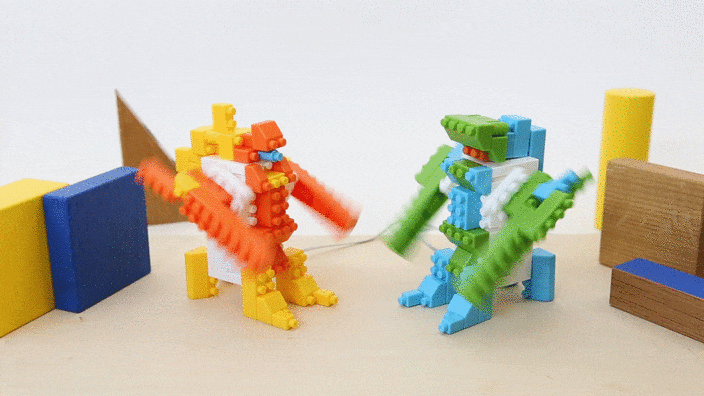 「ダイヤブロック®︎」とユカイ工学「kurikit」が共同開発した、初めてでも簡単につけて外して動かせるやさしいブロックキットです。