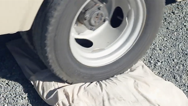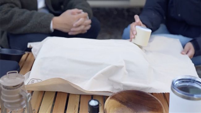 「キャンプレッションバッグ」はフォークで刺す・車でひく等の耐久テストもクリアした頑丈な仕様が特徴。ポリエチレン製の内側も強度が高く、固い物を入れても内側から破れにくいという。