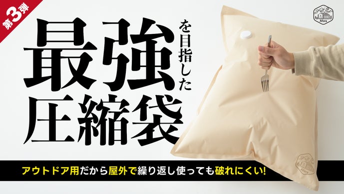 「キャンプレッションバッグ」はアウトドアでの使用に特化した圧縮袋。オックスフォード生地を採用し、岩場にぶつけたり擦ったりしても破れにくいという。