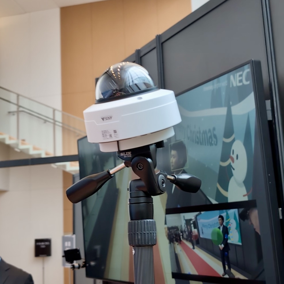 2023年12月15日に行われたNECの研究開発・新規事業創出戦略発表会「NEC Innovation Day 2023」では、「どこでもゲートレス生体認証」のデモを体験できた。システムがセットされた通路では、実際に認証している様子がわかるよう、来場者を映すディスプレイが設置されていた。